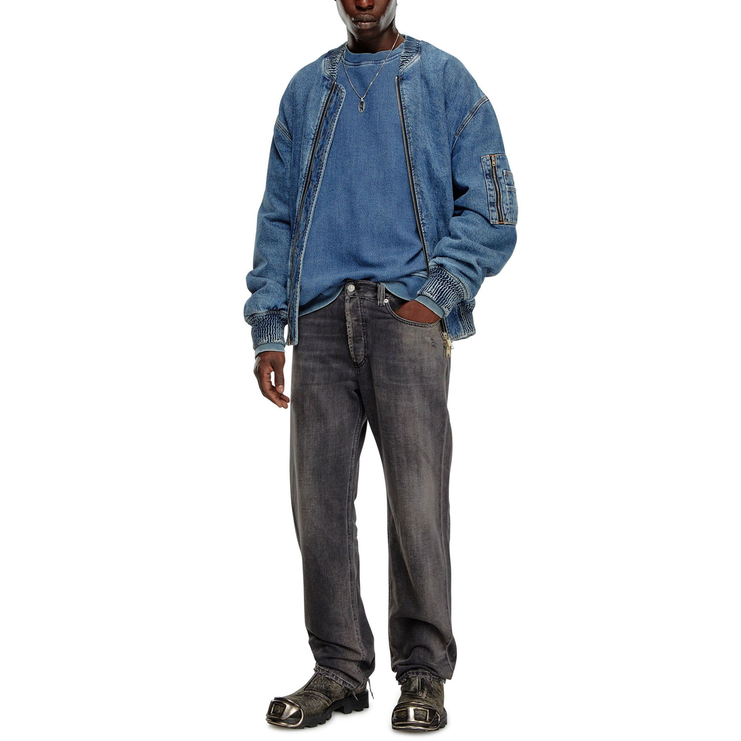 Серые джинсы от Diesel. Loose fit, Straight leg