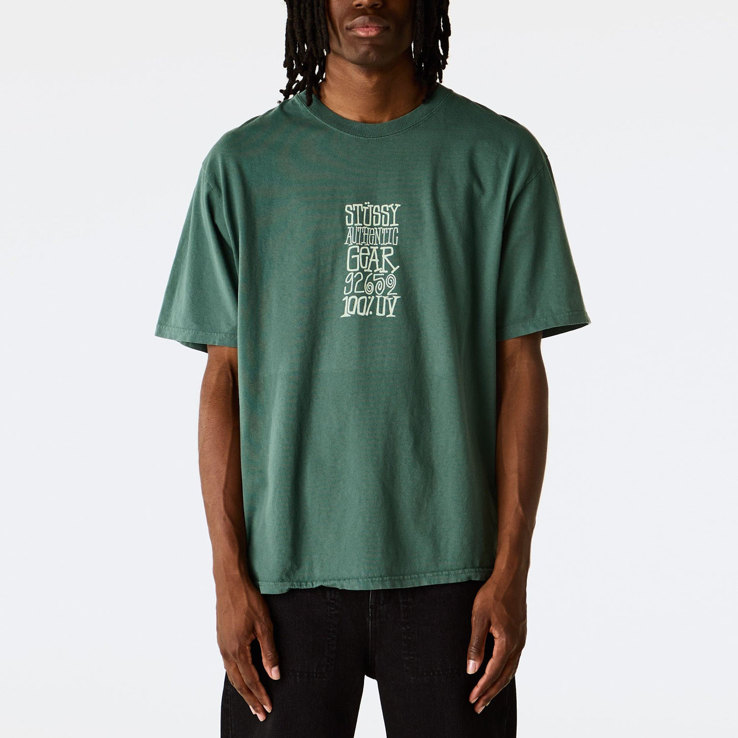 Зеленая футболка от Stussy.