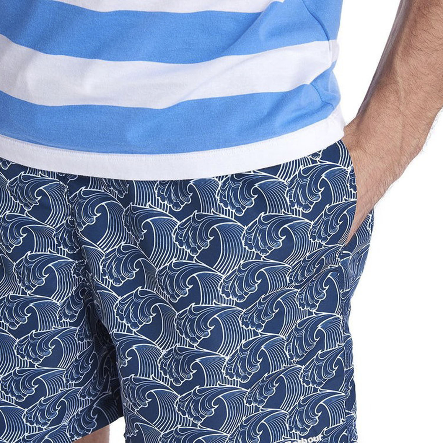 Синие плавательные шорты от Barbour. Имеют карманы