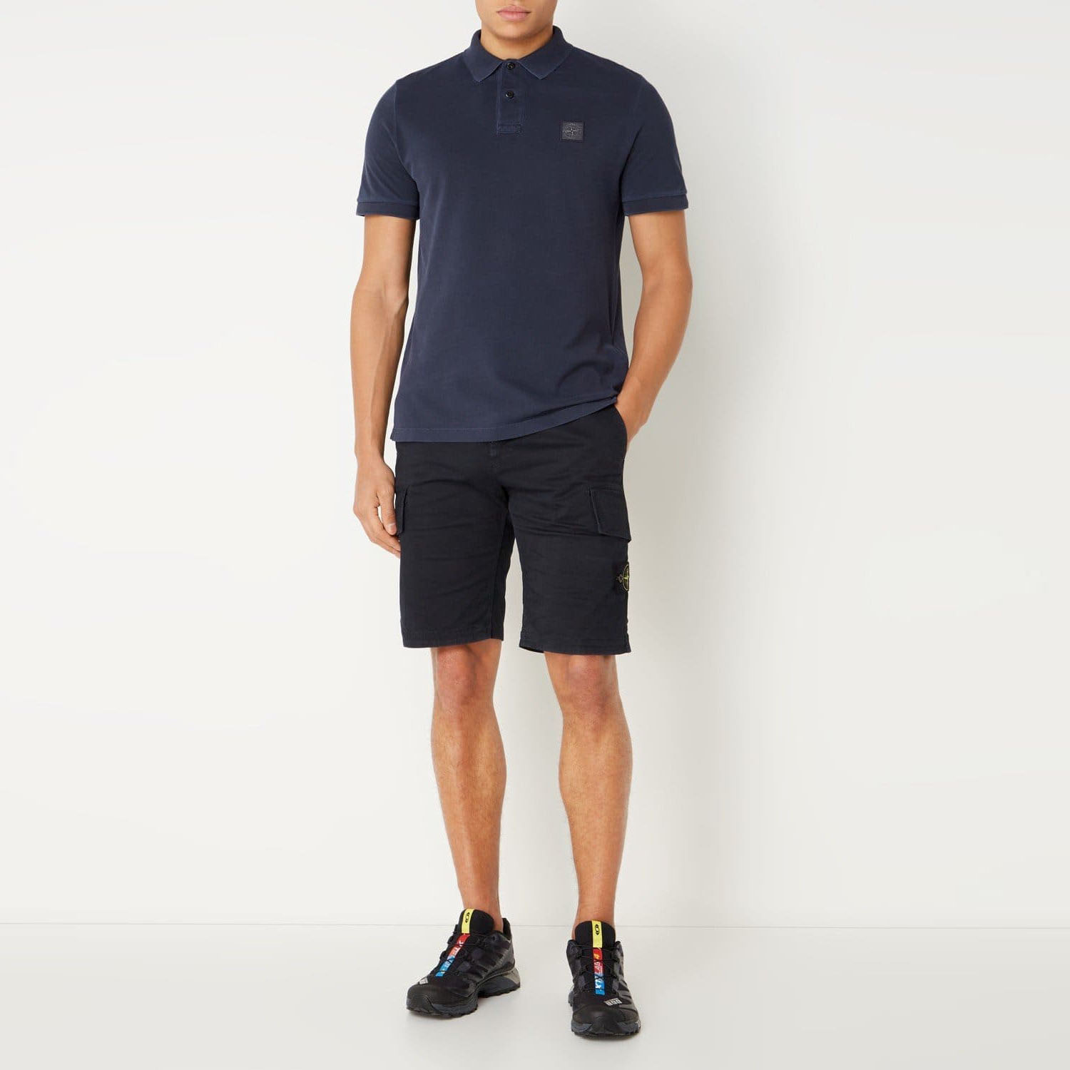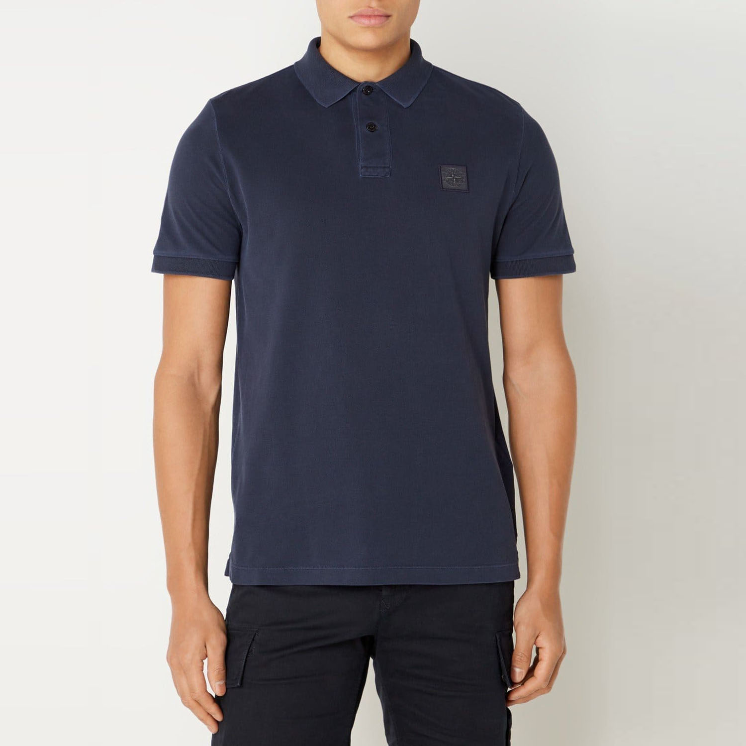 Поло от Stone Island синего цвета. Сделана из коттона. Slim Fit