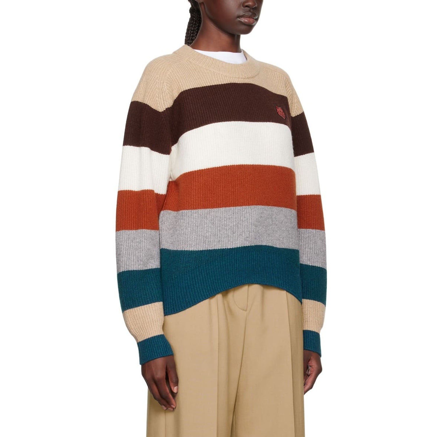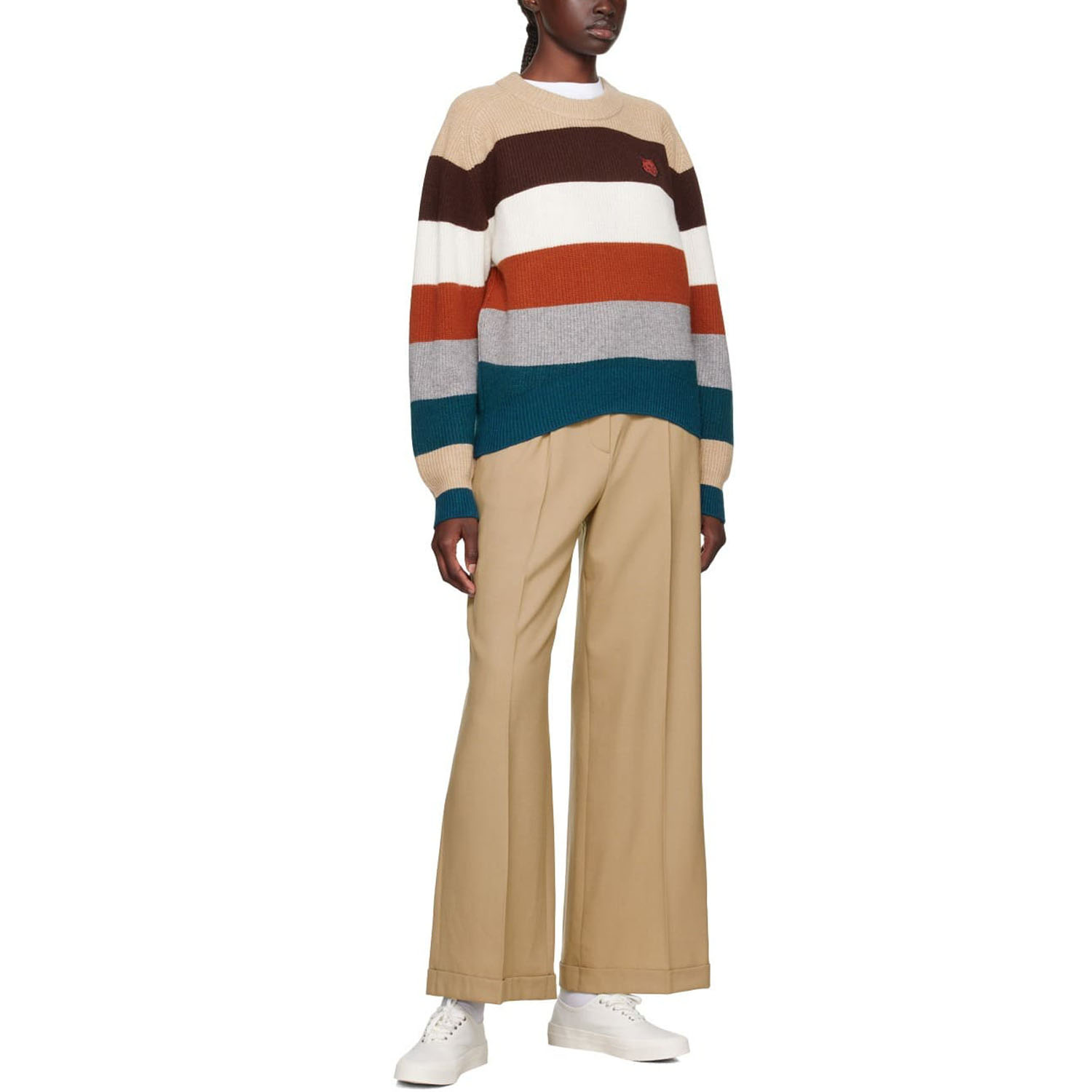 Коричневый свитер от Maison Kitsune.